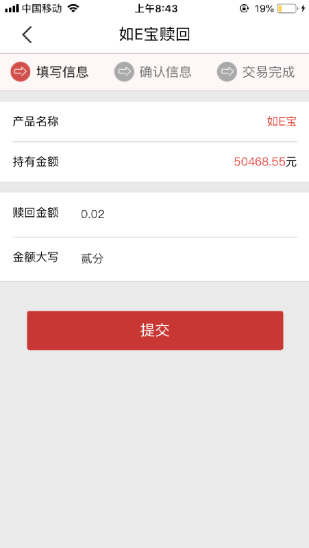 第五步:如有資金使用需求,可進入“如E寶”菜單,輸入贖回金額,驗證支付密碼